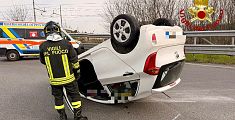 FAUGLIA. Un'auto è stata sbalzata dalla carreggiata a seguito di uno scontro con un'altra vettura. Sul posto Vigili del fuoco e Carabinieri