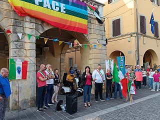 CASCINA — Stop alla guerra e fine del conflitto. Un sit-in per la pace molto sentito e partecipato per esprimere solidarietà con Gaza e vicinanza con le vittime civili di tutte le guerre. E' quello che è andato in scena davanti al palazzo pretorio di Cascina, vestito con una grande bandiera della pace e una della Palestina e dove si sono ritrovati istituzioni, associazioni e semplici cittadini.