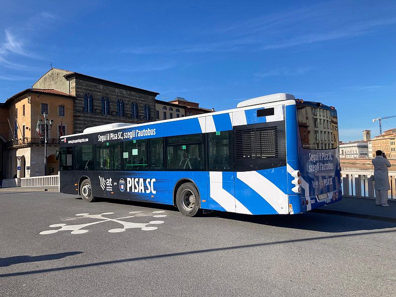 In pratica un bus at interamente brandizzato coi colori e i simboli del Pisa Sporting Club (si veda foto) svolgerà il servizio pubblico di trasporto in città per i prossimi due mesi. Un modo, anche simbolico e visivo, per avvicinare il servizio bus ai pisani che con la propria squadra di calcio hanno un legame molto forte.