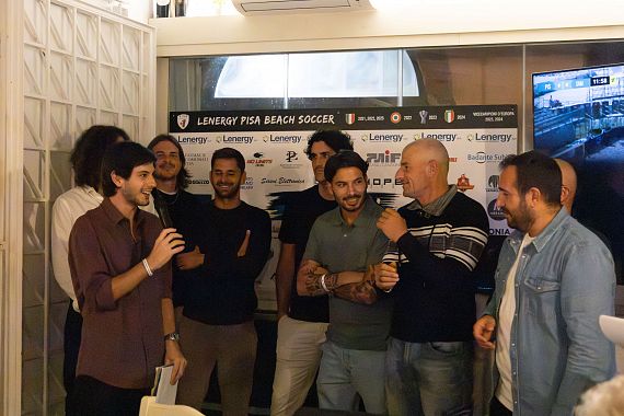 PISA — Serata di festa per il Lenergy Pisa Beach Soccer, che ha celebrato al ristorante Il Mio Capriccio il terzo scudetto della sua storia. Un evento partecipato e sentito, che ha riunito società, squadra, istituzioni e sponsor, con la presenza dell’assessora allo sport Frida Scarpa.
