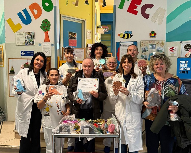 Enrico Della Rosa, guardia giurata del Santa Chiara, ma anche falegname specializzato regala, come da tradizione, le sue creazioni ai piccoli pazienti