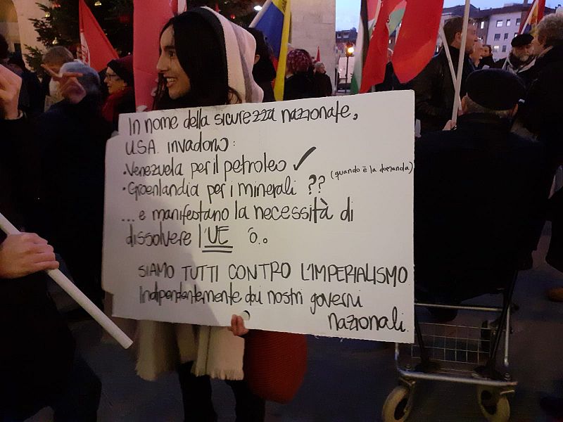 Gli slogan e gli interventi hanno ribadito una condanna netta dell’azione degli Stati Uniti e delle posizioni assunte dal governo italiano, accusato di allineamento alle scelte di Washington. Più volte è stato richiamato il tema dell’internazionalismo e della continuità tra le mobilitazioni per la Palestina e quelle a sostegno del Venezuela, con l’idea di una stessa matrice di conflitti e ingerenze.