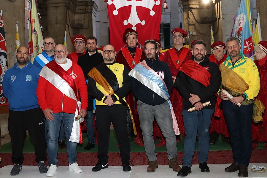 Per quanto riguarda la Parte di Mezzogiorno, per Sant’Antonio è stato scelto Massimo Balducci, quindi per San Martino Aldemaro Marsili, per i Delfini Marco Falugi, per i Dragoni Paolo Vaghetti, per i Leoni Alessio Del Cistia e, per San Marco, Jonathan Rosellini. Quindi, per la Parte di Tramontana, per Santa Maria è stato investito Vincenzo Liguori, per San Francesco Manrico Giusti, per San Michele Alessio Ricci, per Mattaccini Davide Rossi, per i Satiri Massimiliano Signorini e per Calci Steve Conti.