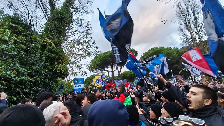 Il gruppo si è radunato intorno ai giocatori in un clima intenso ma semplice alle 16.45, fatto di cori e applausi.