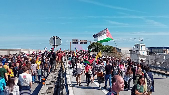 L’azione è arrivata al termine di una mattinata di mobilitazioni che avevano già causato forti disagi in città e nei collegamenti regionali. Prima l’autostrada all’ingresso Pisa-Centro è stata bloccata, con il corteo che successivamente ha percorso l’A12, mentre in parallelo vi era il blocco della superstrada FiPiLi. La manifestazione, dopo il blocco dei treni, si è diretta sull’aeroporto, bersaglio finale della protesta, forzando il blocco e invadendo le piste di atterraggio e partenze dei voli.