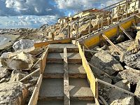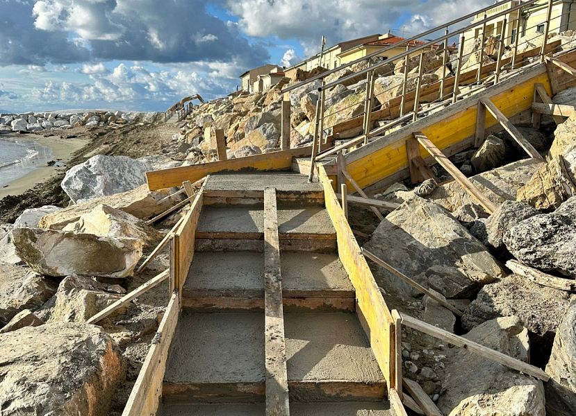 Contemporaneamente, sono in corso i lavori per ripristinare, sempre in piazza Sardegna, la scala di accesso alla spiaggia, intervenendo con la stessa tipologia di materiali e lavorazione. Terminata la costruzione delle strutture portanti in calcestruzzo, sarà collocata la nuova ringhiera di protezione e realizzata un'illuminazione a led lungo il percorso pedonale.