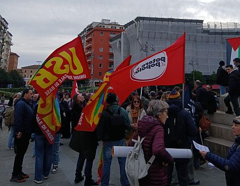 In Piazza Vittorio Emanuele II USB e Potere al Popolo, tra gli altri, alla manifestazione contro la “militarizzazione” di istituti e delle università
