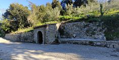 Una targa identificativa all'ingresso del varco di accesso. La fonte rappresenta una testimonianza tangibile della vita sociale dei borghi toscani