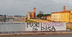 Nel giorno del derby è apparso un lenzuolo contro i leoni fiorentini sul ponte Solferino. Sergio Costanzo rilancia il dibattito sui simboli in città